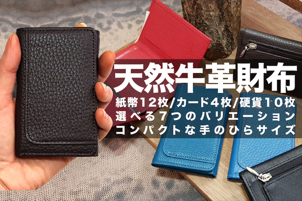 紙幣・コイン・カード、全部入れても三折り、手のひらサイズ!天然牛革財布「ラシル」