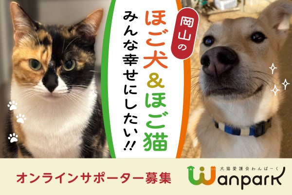 岡山県で犬たち猫たちを殺処分から救うために2008年に創立。 「ずっとのお家」を探す譲渡活動を行い、ご縁を繋いだ犬猫たちは約1,300頭になります。 私たち犬猫愛護会わんぱーくは、1匹でも多くの命を救い、犬たち猫たちと人間が共に幸せになれる社会をめざします。 皆さんのご支援をお願いいたします。