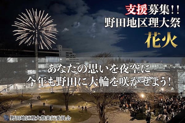募集終了SUCCESS募集終了【東京理科大学野田地区理大祭】今年も夜空を彩る花火で、笑顔と感動を届けたい!