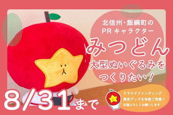 SUCCESS募集終了【町制20周年】飯綱町PRキャラクター「みつどん」の大型ぬいぐるみを作りたい!