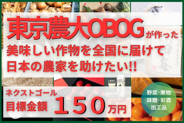 SUCCESS募集終了東京農大OBOGが丹精込めて作った本当に美味しい野菜や加工品を全国へ届けたい!