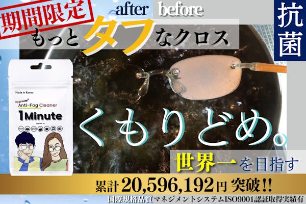 SUCCESS募集終了【期間限定】抗菌効果!曇ったメガネを解消!進化版曇り止め"1minute"