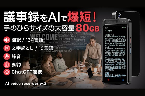 SUCCESS募集終了AIボイスレコーダー 録音・文字起こし・要約・翻訳を1台で!最大134言語を翻訳