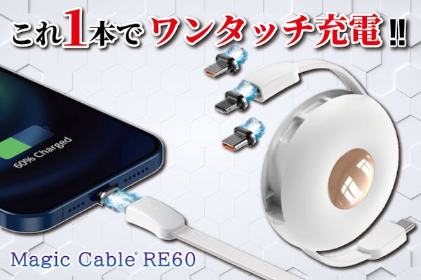 募集終了SUCCESS募集終了【タイプC対応!!】便利にワンタッチ充電!「巻取タイプ」のコンパクト充電ケーブル