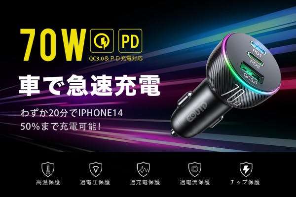募集終了FINISH募集終了車で最大70W急速充電!3ポート対応&素材超軽量&コンパクトなカーチャージャー