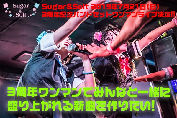 募集終了SUCCESS募集終了長堀橋WAXX開催3周年ワンマンでみんなと一緒に盛り上がれる新曲を披露したい!