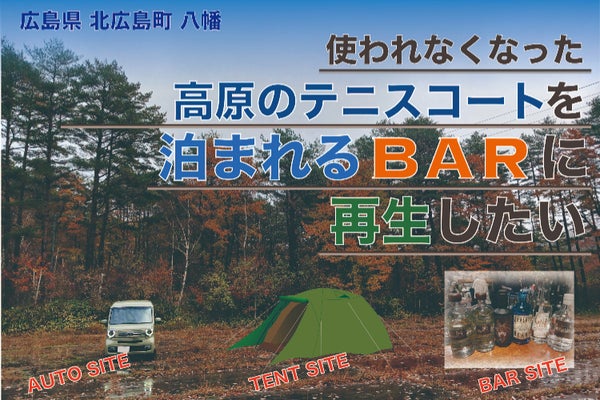 高原の旧テニスコートを「泊まれるBAR」として再生し地域活性に生かす。