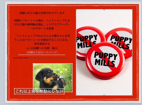 パピーミール規制犬猫展示販売廃止を求めるリーフレット PDF ポストカード作成