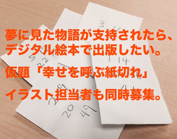 夢で見た物語をデジタル絵本にしたい。「(仮)幸せを呼ぶ紙切れ」