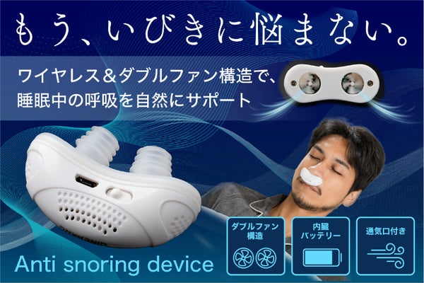 ワイヤレス&ダブルファン構造で睡眠中の呼吸を自然にサポート【いびきデバイス】