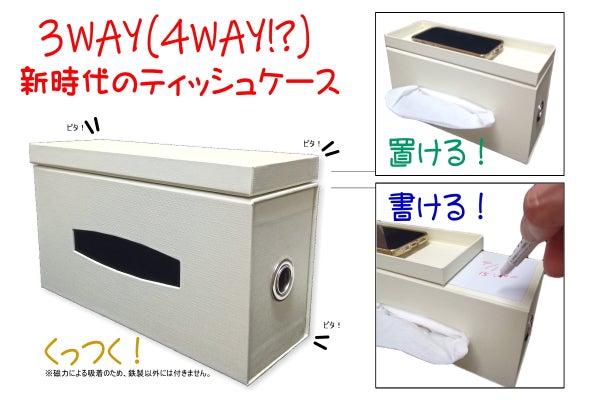 新時代のティッシュケース!置ける、書ける、ひっつくの3WAY