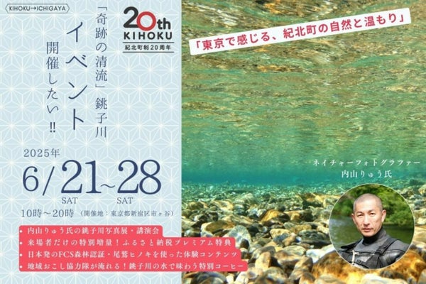 奇跡の清流が東京に来る!町制20周年記念「三重県紀北町・銚子川」応援プロジェクト