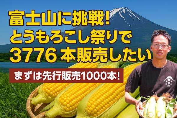 SUCCESS募集終了富士山に挑戦!とうもろこし祭りで3776本販売したい!まずは先行販売1000本!