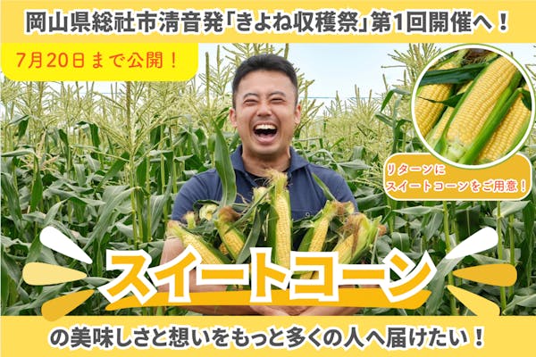 SUCCESS募集終了岡山県総社市清音発『きよね収穫祭』第1回開催!スイートコーンを多くの人へ届けたい