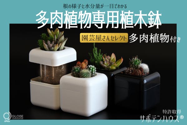 根腐れを防げる多肉植物用植木鉢「サボテンハウス」に多肉植物を植えてお届けします。