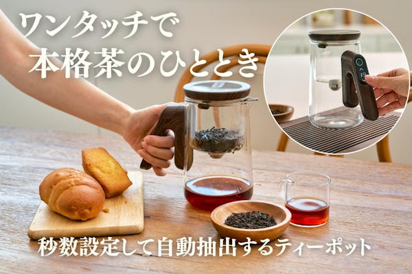 SUCCESS募集終了お湯を注いでワンタッチ!秒数設定、自動抽出!簡単に本格茶が楽しめるティーポット!