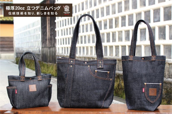 デニムの聖地! 岡山県倉敷市発! 強い・丈夫な立つデニムバックが誕生!