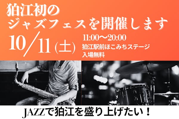 募集終了SUCCESS募集終了【東京都狛江市】初のジャズフェスティバルを開催して、地元狛江を盛り上げたい!