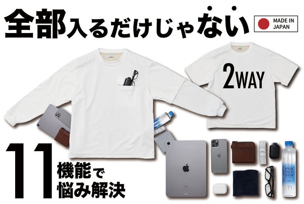 【究極の2代目】手ぶら2WAY超撥水Tシャツ/透け&汗ジミ&シワ防止など11機能