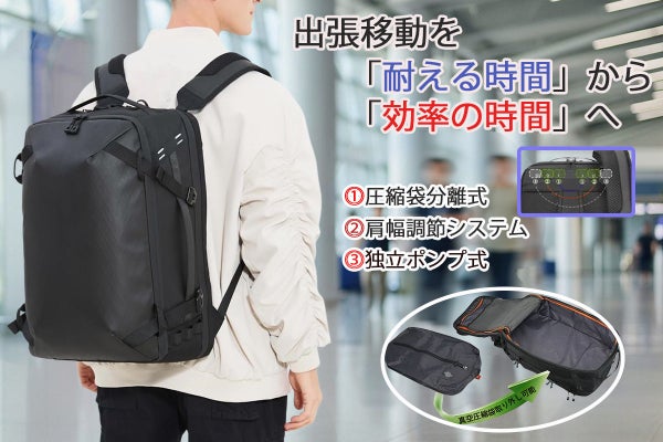 ビジネスリュック・出張前夜から帰宅までのストレスを減らす、分離式圧縮収納バッグ