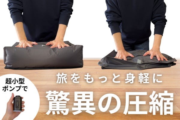 進化した圧縮袋/ 電動で荷物を小さく。スペースを創り出すトラベル圧縮バッグ