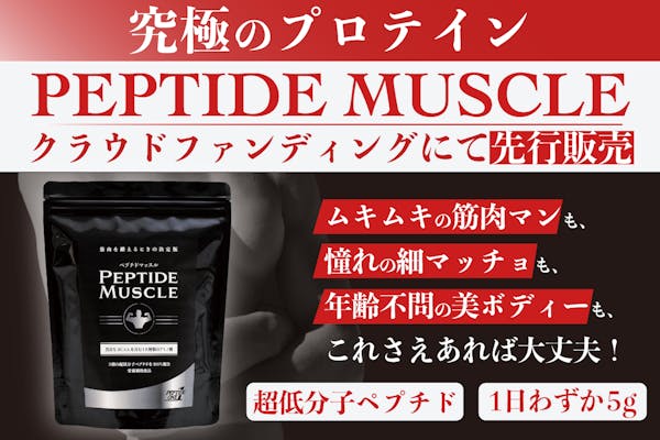 募集終了SUCCESS募集終了【筋肉を鍛えるときの決定版!】究極のプロテイン=ペプチドマッスルを早割予約で!!