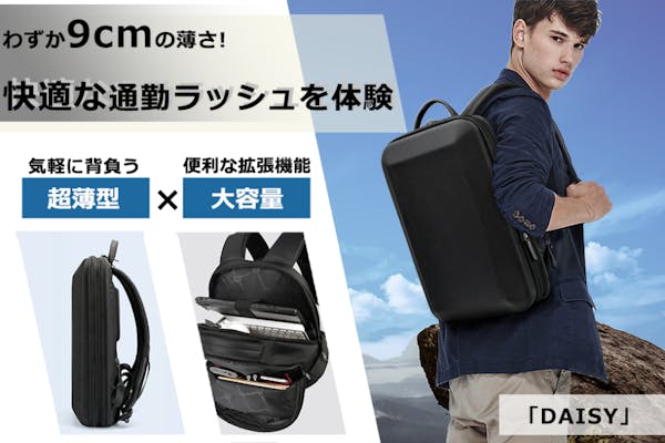 薄さ9cmの快適な通勤ラッシュ新体験!通勤、旅行、出張に欠かせないハードリュック