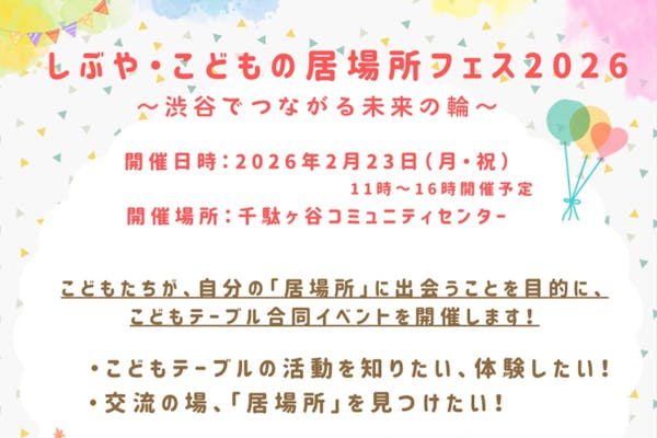 募集終了SUCCESS募集終了しぶや・こどもの居場所フェス2026〜渋谷でつながる未来の輪〜