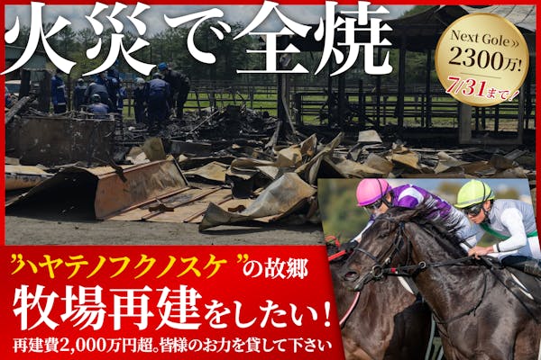 SUCCESS募集終了火災で全焼【再建費2000万超】ハヤテノフクノスケを輩出した牧場を再建したい!
