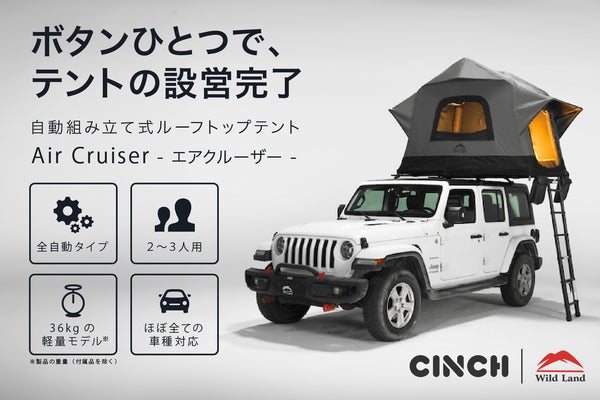 駐車、即テント設営完了。自動組み立て式ルーフトップテント