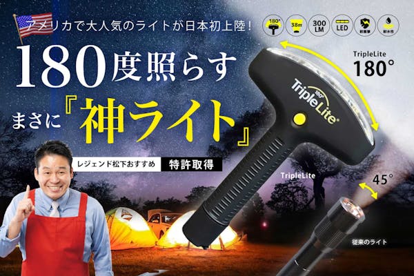 FINISH募集終了【180°トリプルライト】特許取得!従来のライトの常識を覆す明るさ