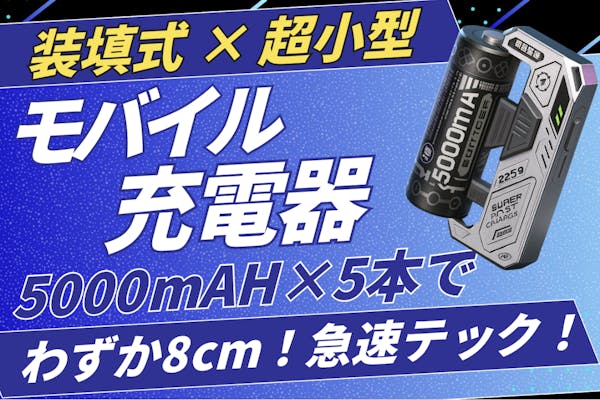 SUCCESS募集終了最大25000mAhの小型モバイル充電器!着脱式5000mAh電池×5個が軽い!