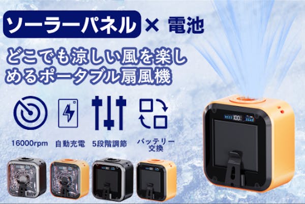 SUCCESS募集終了電力を選ばない頼れる風力。交換式バッテリー&ソーラー充電対応のポータブル扇風機
