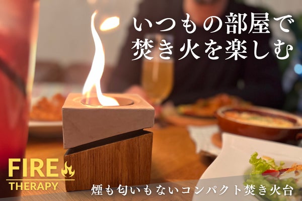 炎と暮らす毎日を。木目と炎で過ごす癒やしの時間。煙も匂いもないコンパクト焚き火台