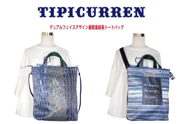 ユニークなデュアルフェイスデザインの最軽量縦長トートバッグ