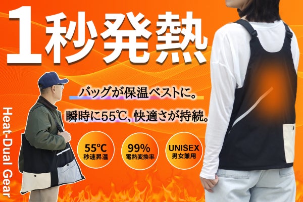 【1秒発熱、瞬時に55℃】着る暖房、薄着でもぽかぽか!大容量バッグにもなる。
