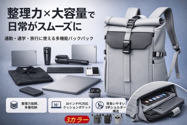 撥水×大容量×PC収納。通勤・通学・旅行まで“毎日使える”ロールトップリュック