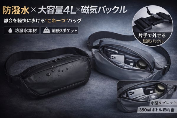 防潑水 × 大容量 × 磁気バックル !都会の日常をスマートにするボディバッグ