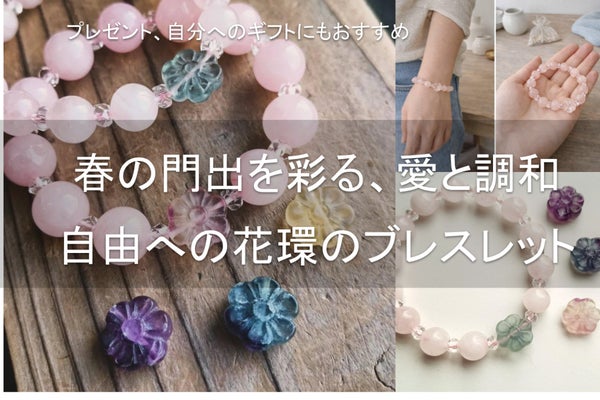 春の門出を彩る、愛と調和、自由への花環のブレスレット。ギフトにもおすすめ。