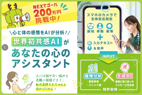 【特許取得済】心と体の感情をAIが分析!世界初共感AIがあなたの心のアシスタント