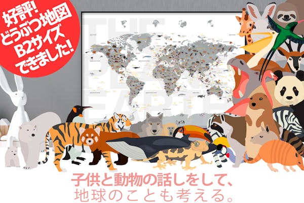 募集終了SUCCESS募集終了継続!【B2サイズ登場】どうぶつ世界地図・子供も大喜び!知育とおしゃれなデザイン