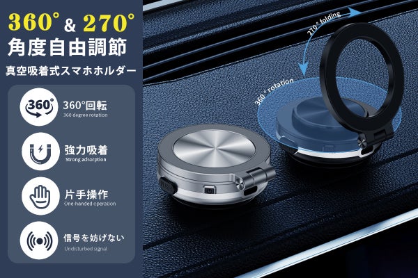 強力なマグネットと真空吸着で360°自由に取り付け可能なスマホホルダー