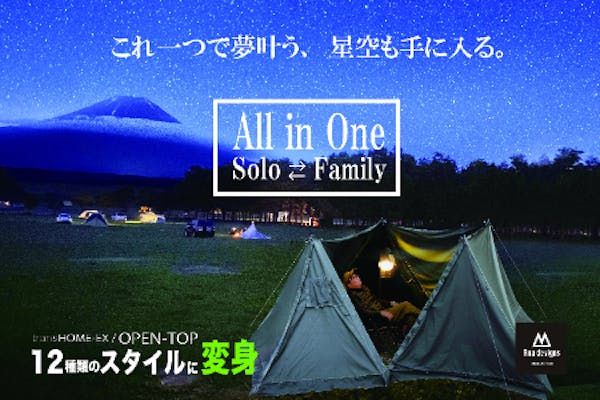 ソロでもファミリーでもこれ一つ!12種類以上のスタイルに変身するテント。