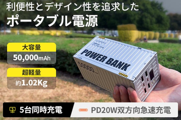 片手で持てるコンパクトで軽量ポータブル電源「Wopow」最大5台同時充電