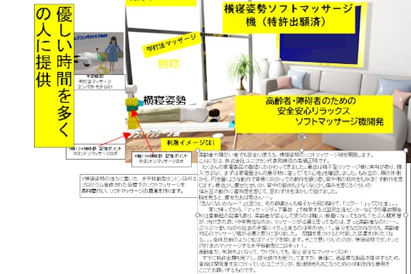 もうすぐ公開安心の横寝マッサージ機: 高齢者向け新製品開発