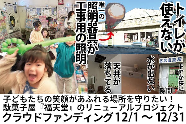 SUCCESS募集終了子どもの未来は日本の未来! 企業連携型駄菓子屋「福天堂」が日本を明るく照らす!