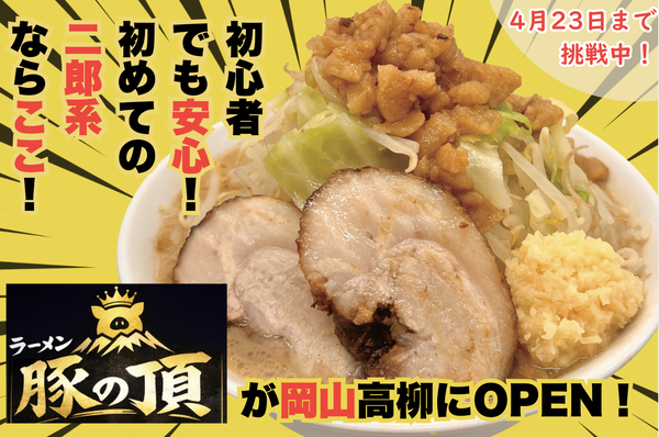 初心者でも安心!初めての二郎系ならここ!『ラーメン豚の頂』が岡山高柳にOPEN!