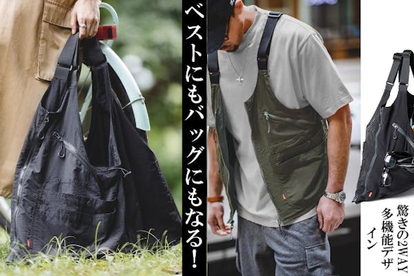 募集終了FINISH募集終了両手が空く。ベストにもバッグにもなる!驚きの2WAY多機能デザイン