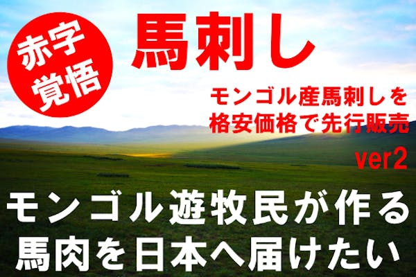 SUCCESS募集終了【馬刺し】モンゴル遊牧民が作る馬肉を日本に届け、遊牧文化を守りたい!