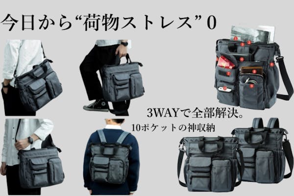 SUCCESS募集終了1つで全部こなす。手提げ・肩掛け・リュックの3WAY多機能バッグ